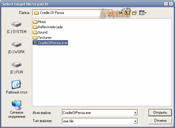 2. Откроется окно проводника, нужно указать путь к экзешнику (исполняемому файлу) игры, который естественно лежит в папке с игрой, которую вы выбрали при установке, и нажать кнопку "Открыть".
